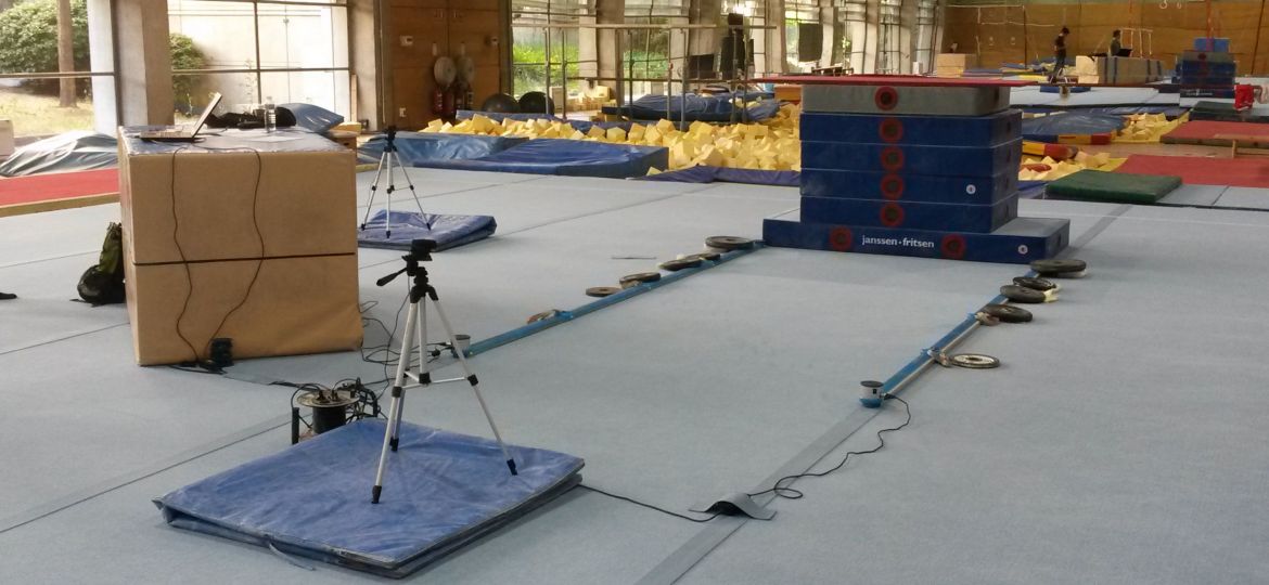 El sistema de pruebas está basado en la medición por multicélulas leds infrarrojas de los apoyos del atleta en el tapiz y de los diferentes elementos y secuencias en suelo: